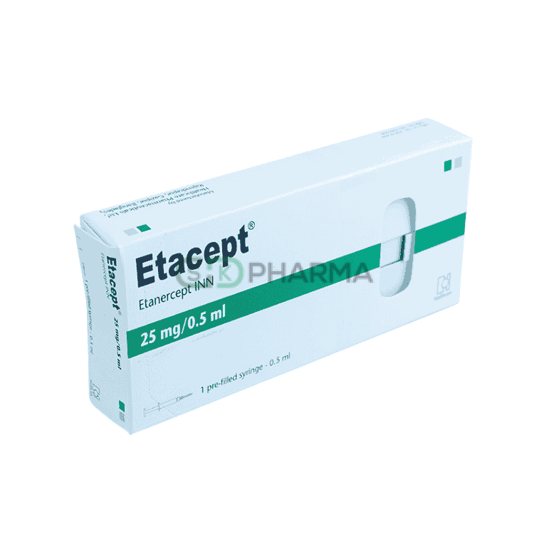 Etacept Injection 25 mg/0.5 ml contains Etanercept. It is a targeted biologic therapy used to reduce inflammation in chronic autoimmune disorders by blocking tumor necrosis factor (TNF), a key mediator of inflammation.